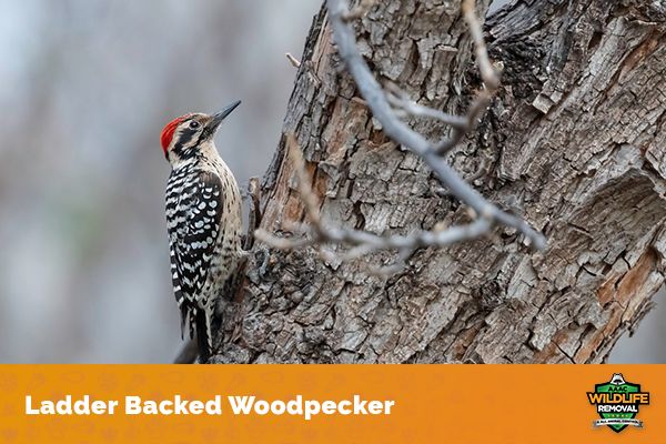 The Ladder Backed Woodpecker is a common type of woodpecker in North America. It is a small bird, with a length of around 8 inches. The back and wings are black, with white stripes running down the sides. The underparts are pale, with a black band across the breast. Its head is black, with a white stripe running down the center.