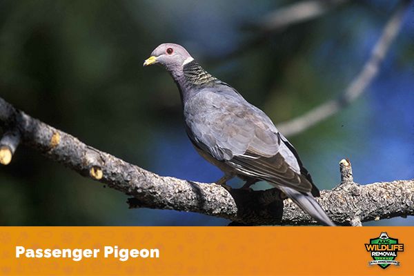 Birds that have been victims of human hunting include the Passenger Pigeon, Carolina Parakeet, Great Auk, and Heath Hen.